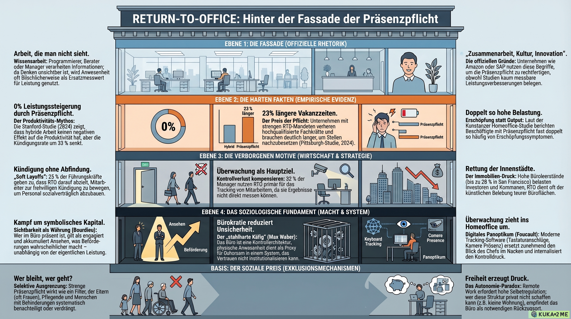Dieser Artikel hat eine These verfolgt: Return-to-Office ist kein Produktivitätsprogramm. Es ist ein Kontrollprogramm. Die Evidenz stützt das. Die Theorie erklärt es. Die Praxis bestätigt es täglich.